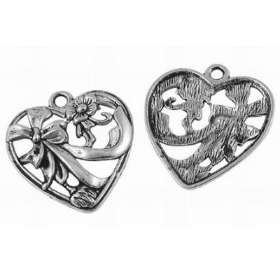 Charm a forma di cuore con fiocchi e fiori. Ciondoli argentati adatti a decorare i vostri bijoux e accessori: orecchini, collane, bracciali, cinture o accessori per la persona o la casa. Resistenti e e lucidi con i dettagli definiti e ben evidenti per rendere bella e realistica la riproduzione.